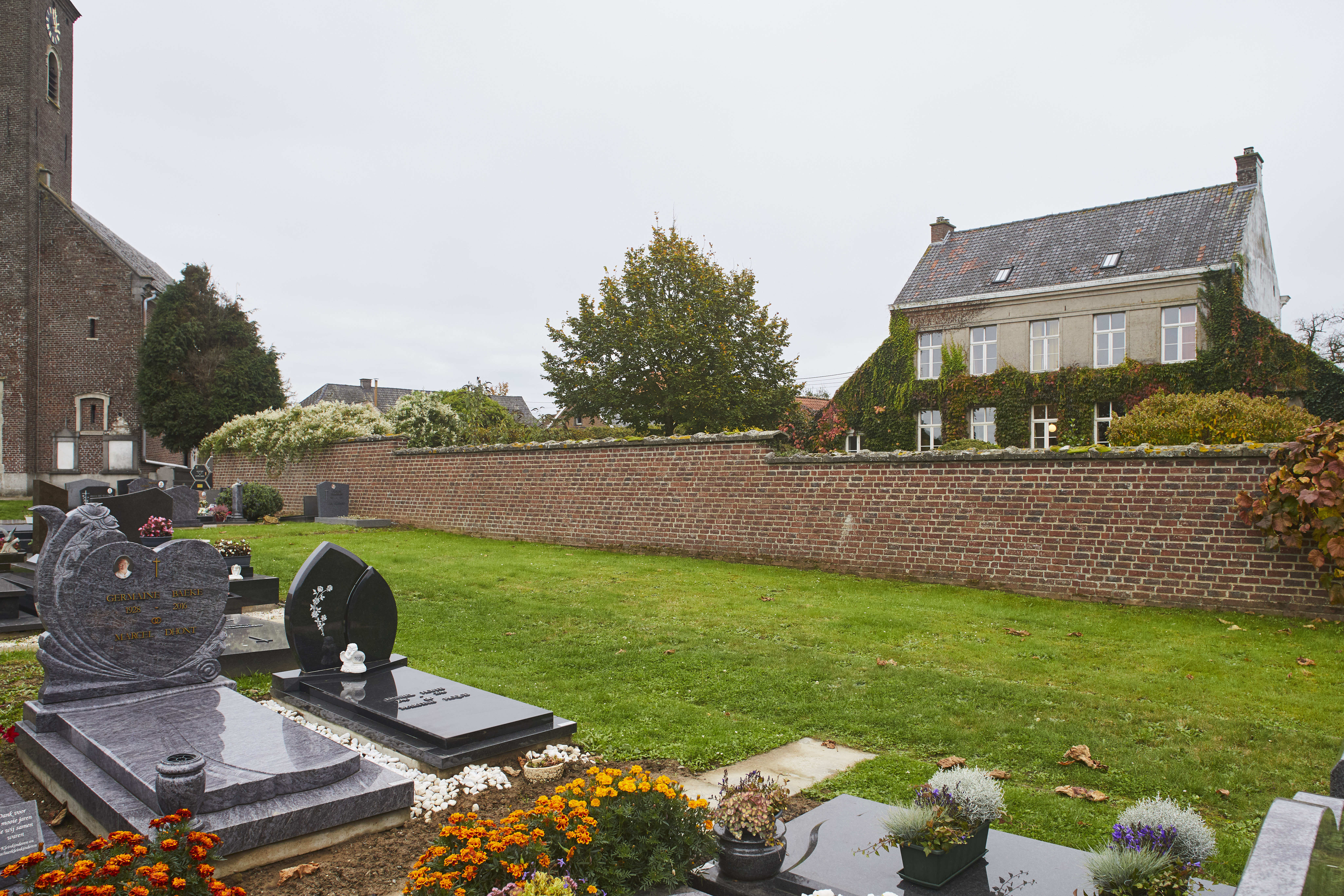 Zicht op pastorie vanop kerkhof parochiekerk Sint-Martinus