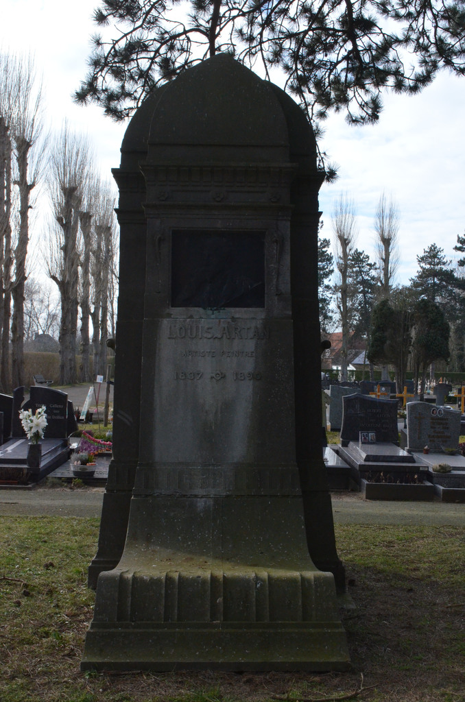 De afbeelding 'Graf en grafteken voor Louis Artan' gemaakt door Mertens, Joeri wordt ter beschikking gesteld door Agentschap Onroerend Erfgoed (AOE) onder de volgende voorwaarden: Modellicentie voor gratis hergebruik, Naamsvermelding 4.0 Internationaal.