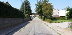 Motstraat: kasseiweg met betonnen langsstroken in de dorpskern van Goetsenhoven