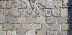 Grotendeels verhard in porfier, hersteld met zandsteen (grès).