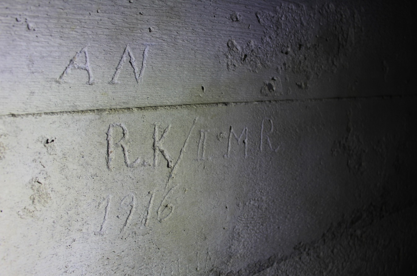 Inscriptie op binnenmuur bunker, ontdekt door Tom Oliviers (doorgestuurd op 18 februari 2019).