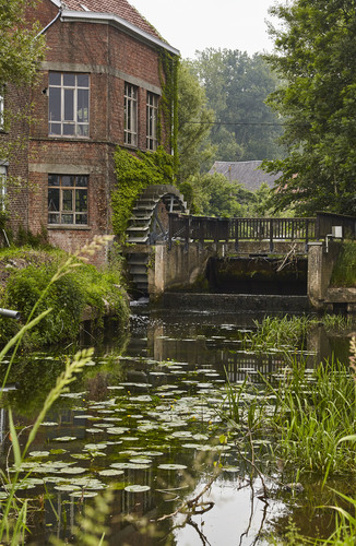 Watermolen op een oude hoevesite met ringgracht. Foto genomen voor de uitreiking van de Onroerenderfgoedprijs 2018. Heetveldemolen in Tollembeek is de winnaar van de Prijs participatie.