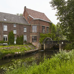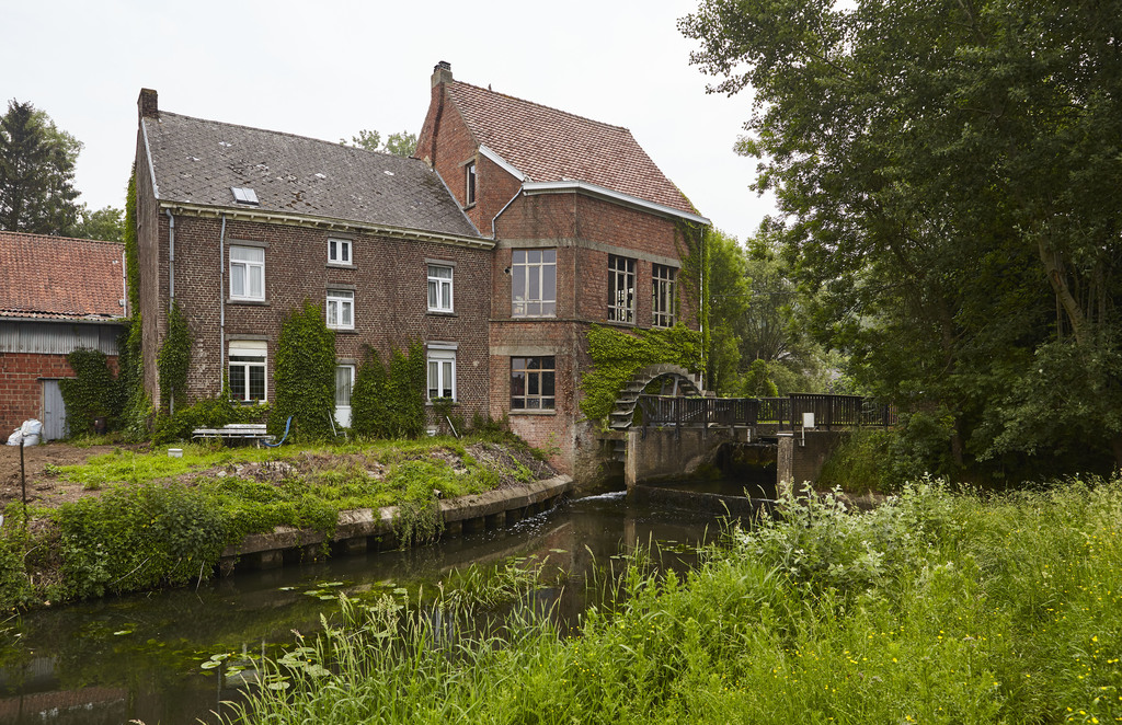 Watermolen op een oude hoevesite met ringgracht. Foto genomen voor de uitreiking van de Onroerenderfgoedprijs 2018. Heetveldemolen in Tollembeek is de winnaar van de Prijs participatie.