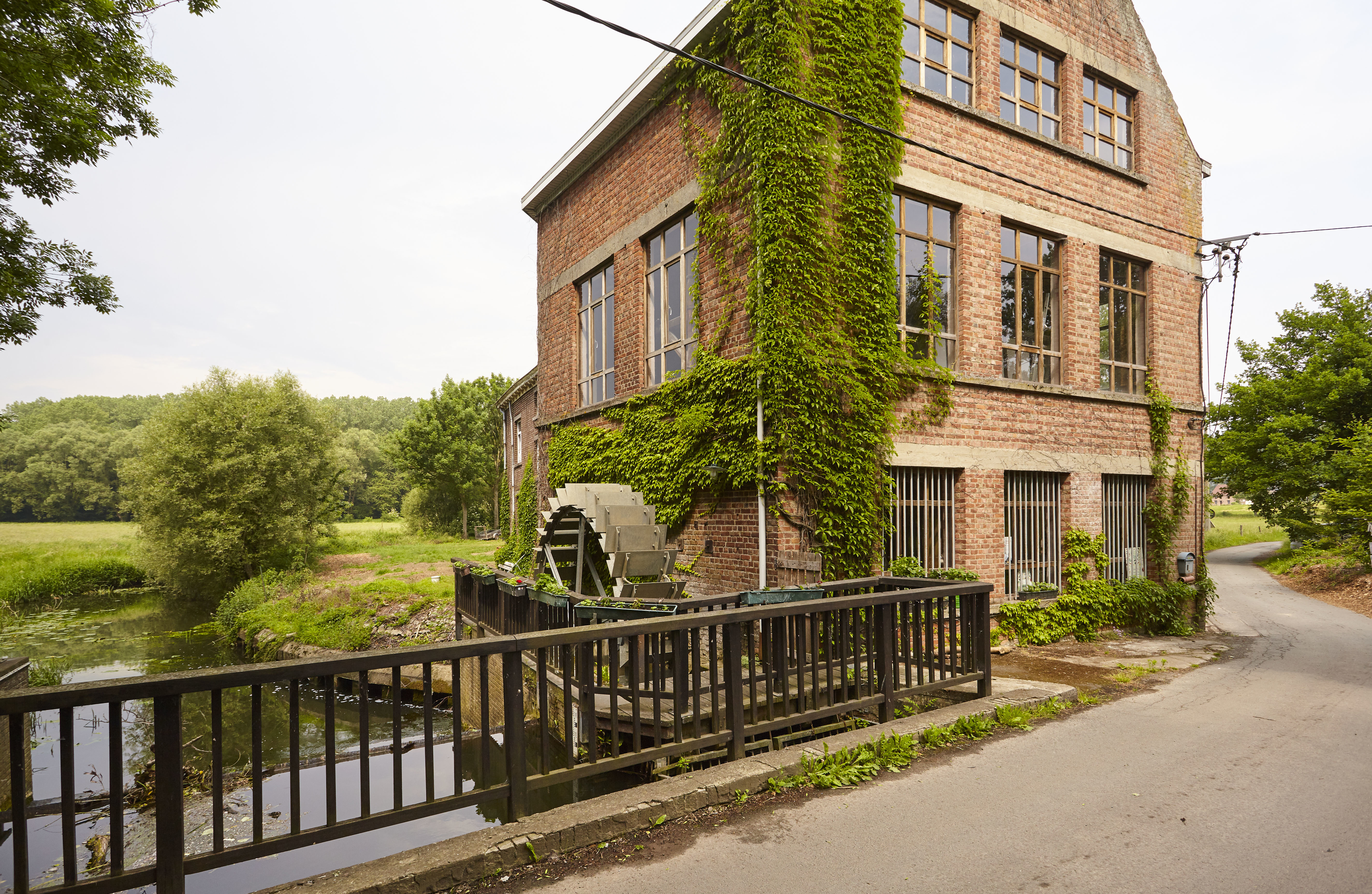 Watermolen op een oude hoevesite met ringgracht. Foto genomen voor de uitreiking van de Onroerenderfgoedprijs 2018. Heetveldemolen in Tollembeek is de winnaar van de Prijs participatie.