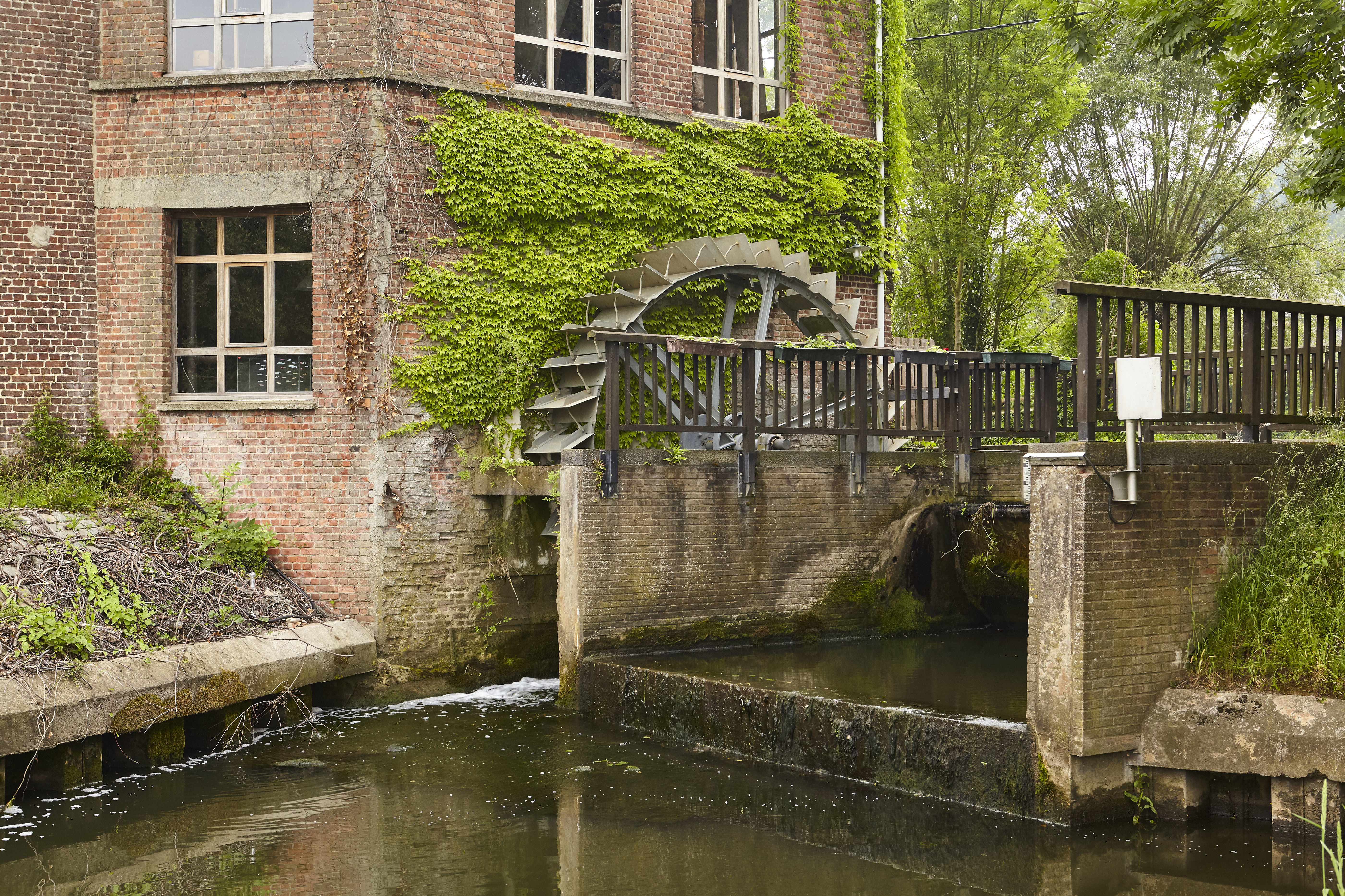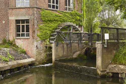 Watermolen op een oude hoevesite met ringgracht. Foto genomen voor de uitreiking van de Onroerenderfgoedprijs 2018. Heetveldemolen in Tollembeek is de winnaar van de Prijs participatie.