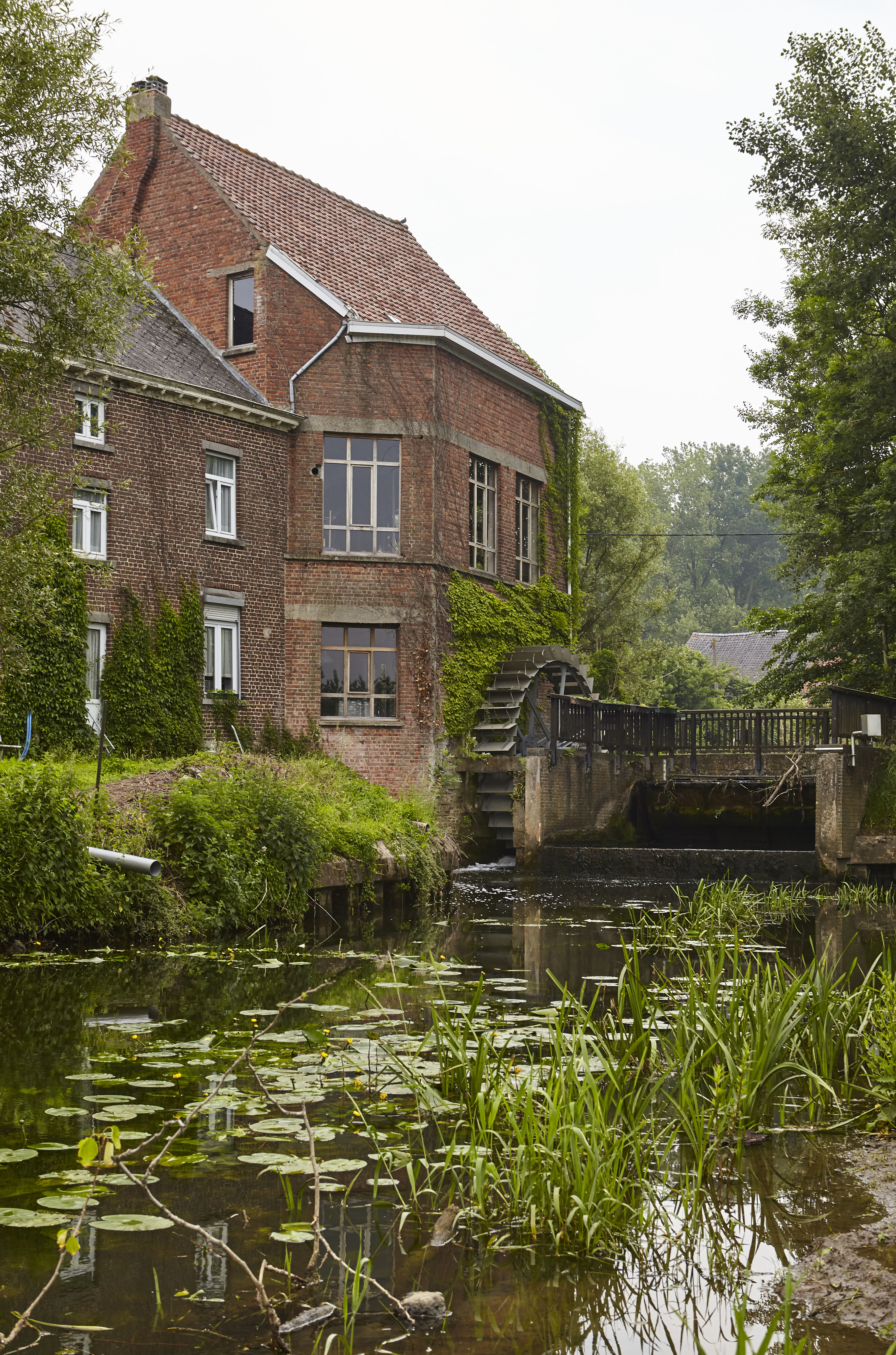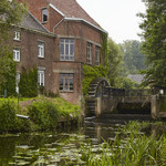 Watermolen op een oude hoevesite met ringgracht. Foto genomen voor de uitreiking van de Onroerenderfgoedprijs 2018. Heetveldemolen in Tollembeek is de winnaar van de Prijs participatie.