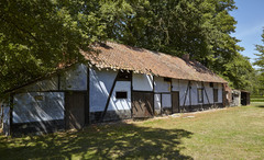 De afbeelding 'Langgestrekte vakwerkhoeve' gemaakt door Vandevorst, Kris wordt ter beschikking gesteld door Agentschap Onroerend Erfgoed (AOE) onder de volgende voorwaarden: Modellicentie voor gratis hergebruik, Naamsvermelding 4.0 Internationaal.