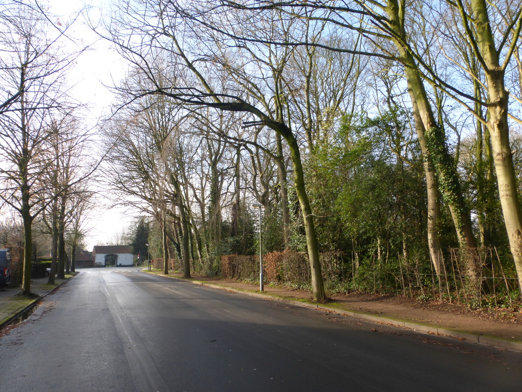 Van Belleghemdreef met opgaande linden langsheen het park van kasteel Blommeghem