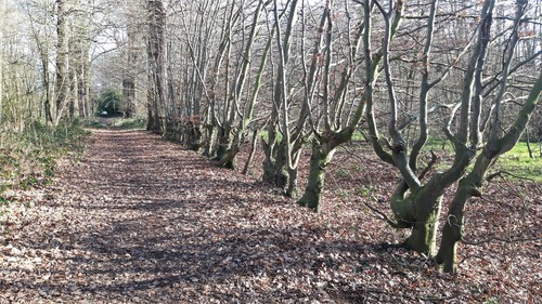 Zicht op beukenhaag in dreef