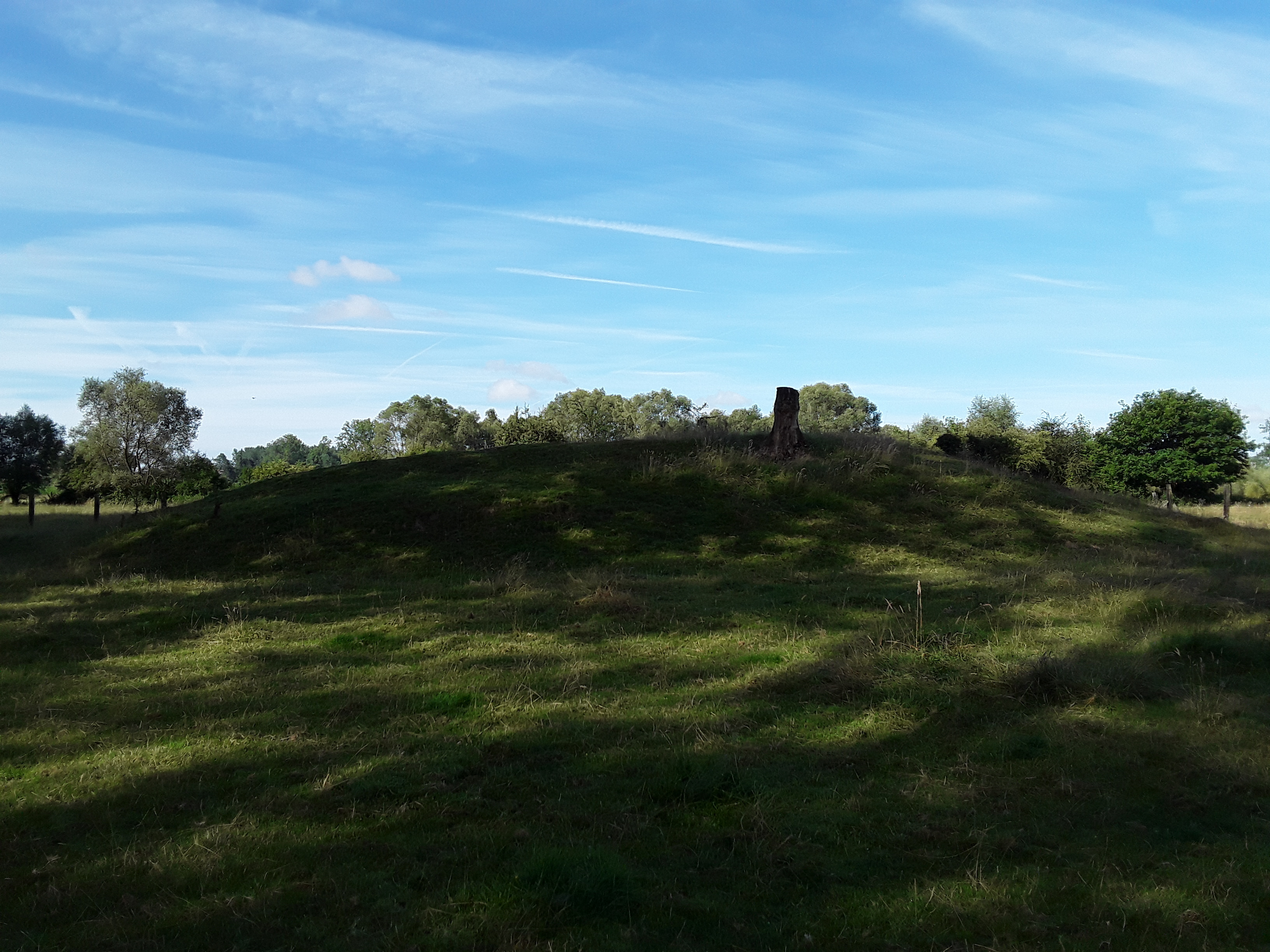 De motteheuvel van de Motte van Heldergem bij terreinbezoek op 9 juli 2019