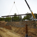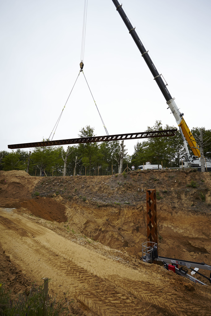 Plaatsing van de overkapping over de archeologische site