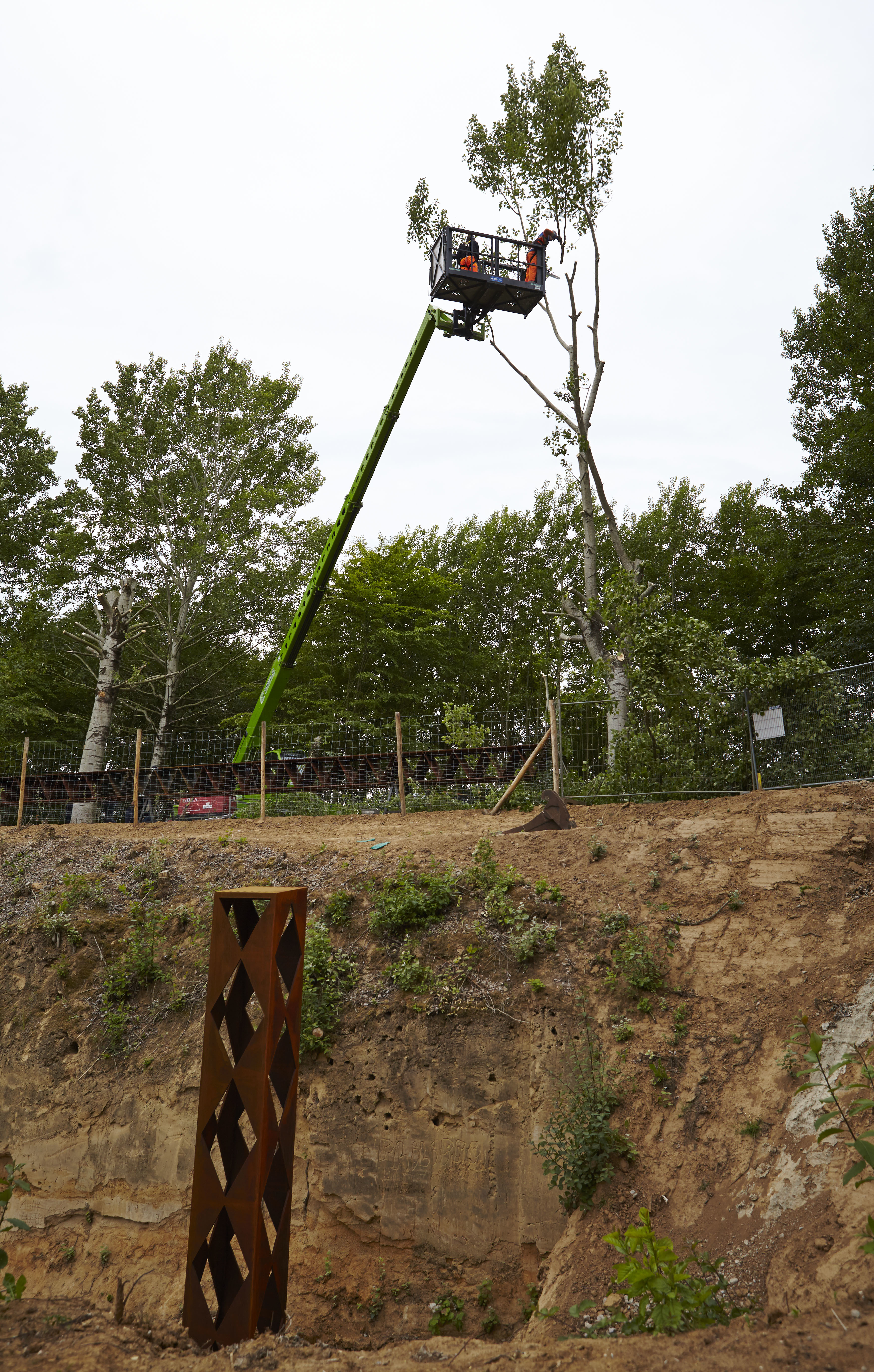 Plaatsing van de overkapping over de archeologische site