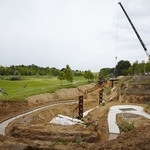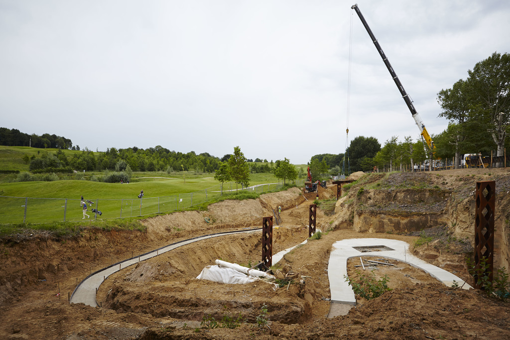 Plaatsing van de overkapping over de archeologische site