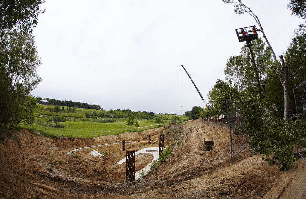 Plaatsing van de overkapping over de archeologische site
