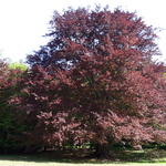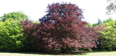 Breed uitwaaierende, lijvige bruine beuk in het kasteeldomein van Meldert.