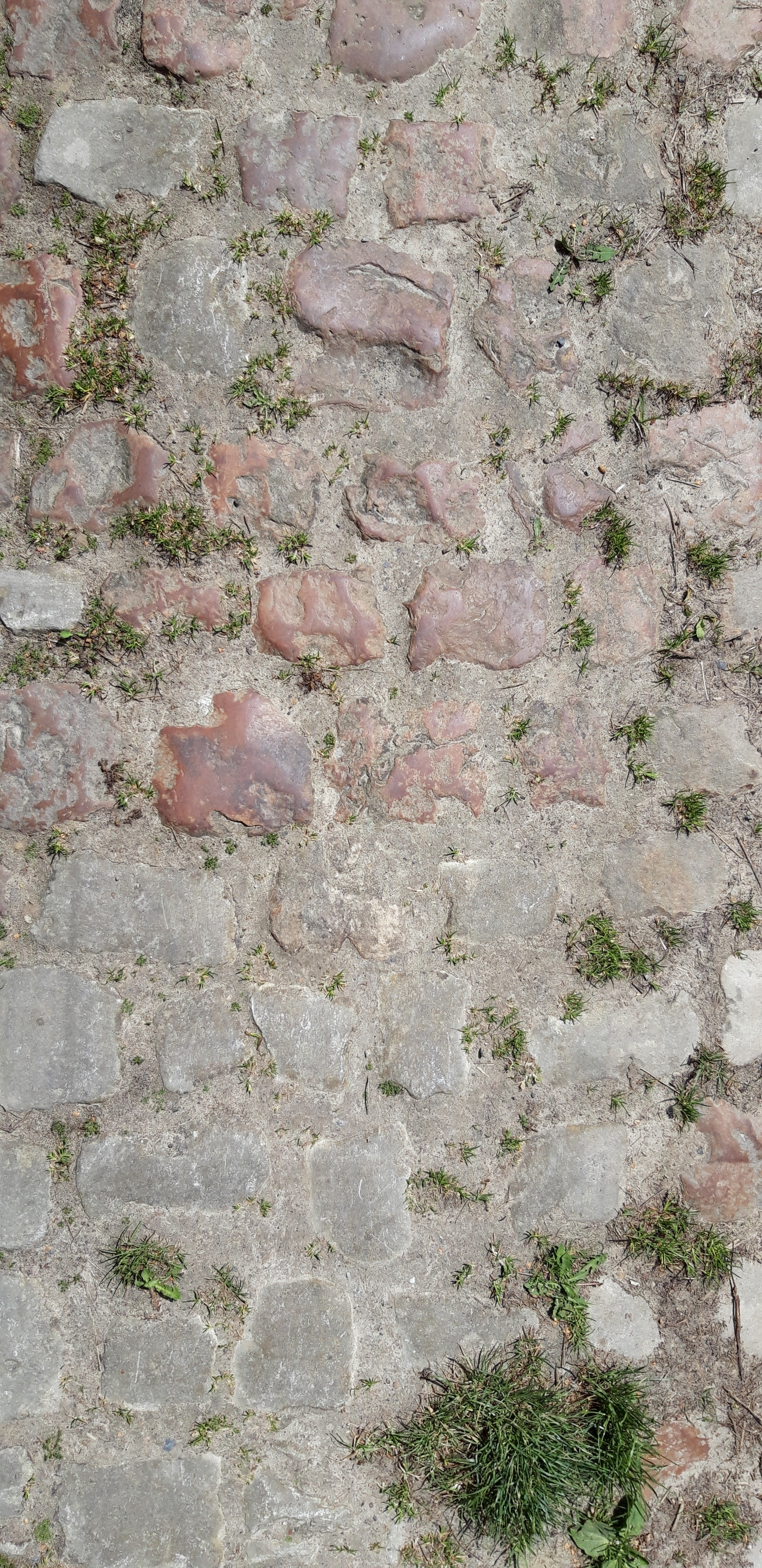 De Keulenstraat is afwisselend in Tiense kwartsiet (boven) en Gobertange (onder) gekasseid.