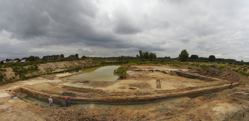 Overzichtsbeeld van de archeologische opgraving van zone A in de Bergenmeersen te Wichelen.