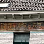 De afbeelding 'Turnhout de Merodelei 41 detail sgraffito' gemaakt door Daemen, Caroline wordt ter beschikking gesteld door Erfgoed Noorderkempen (Dubbel) onder de volgende voorwaarden: Modellicentie voor gratis hergebruik, Naamsvermelding 4.0 Internationaal.