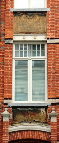 De afbeelding 'Turnhout Kerkstraat 3 detail sgraffito 4 deurtravee' gemaakt door Daemen, Caroline wordt ter beschikking gesteld door Erfgoed Noorderkempen (Dubbel) onder de volgende voorwaarden: Modellicentie voor gratis hergebruik, Naamsvermelding 4.0 Internationaal.