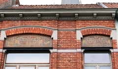 De afbeelding 'Turnhout Molenstraat 29 detail sgraffito' gemaakt door Daemen, Caroline wordt ter beschikking gesteld door Erfgoed Noorderkempen (Dubbel) onder de volgende voorwaarden: Modellicentie voor gratis hergebruik, Naamsvermelding 4.0 Internationaal.