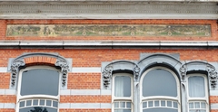 De afbeelding 'Turnhout Patersstraat 55 detail sgraffito 1' gemaakt door Hermans, Johanna wordt ter beschikking gesteld door Erfgoed Noorderkempen (Dubbel) onder de volgende voorwaarden: Modellicentie voor gratis hergebruik, Naamsvermelding 4.0 Internationaal.
