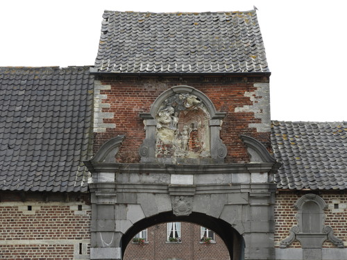 Bas-reliëf boven de 17de-eeuwse toegangspoort van de abdij van het cisterciënzerinnenklooster Maegdendaal van Oplinter. Het stelt God de Vader met wereldbol en de geknielde Sint-Bernardus voor.