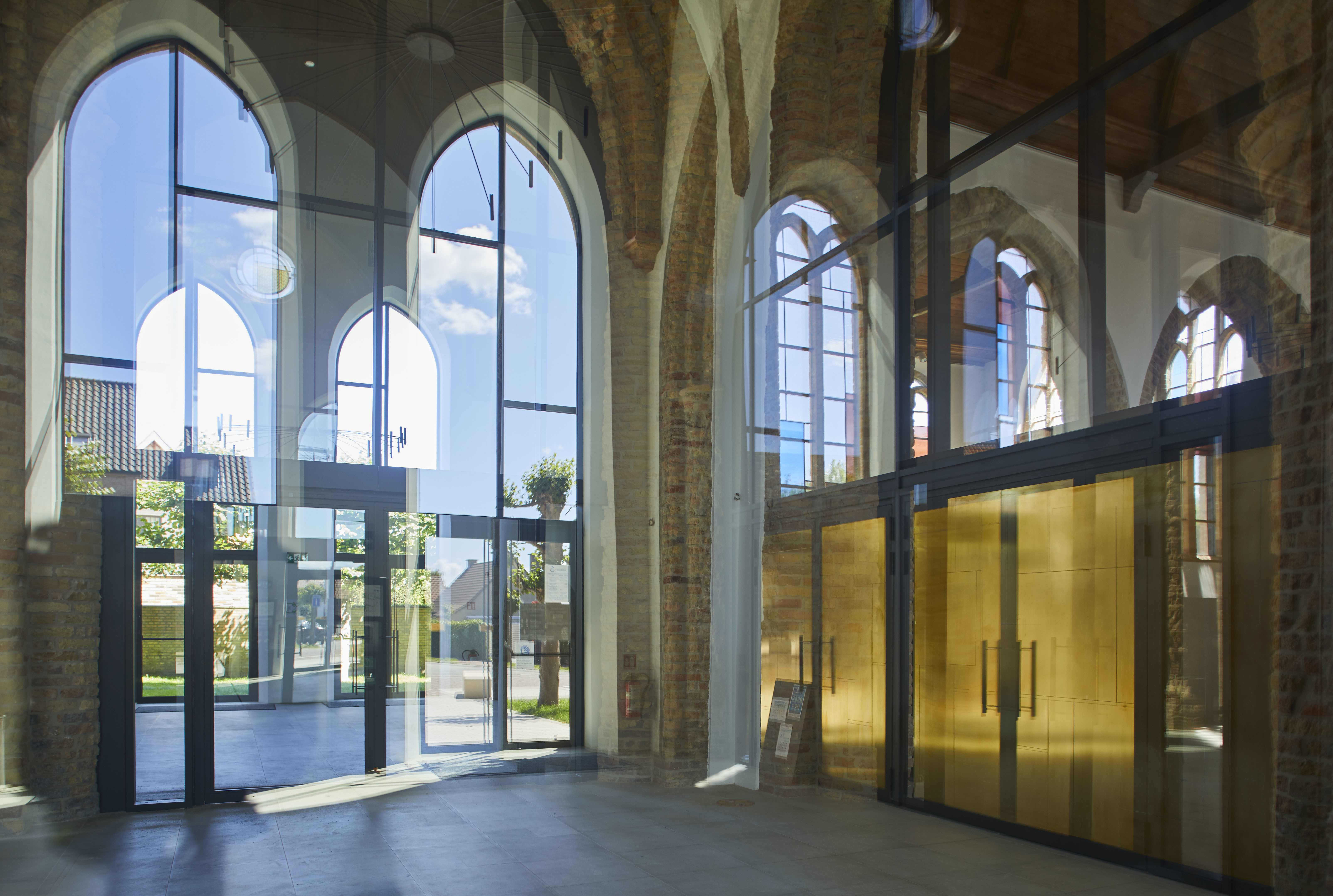 Na een zware brand werd deze kerk in 2019 volledig gerestaureerd en deels herbestemd als polyvalente ruimte. Foto genomen voor de uitreiking van de Onroerenderfgoedprijs 2020. De Sint-Niklaaskerk in Westkapelle is een verdiende laureaat van deze editie.