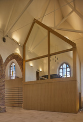 Na een zware brand werd deze kerk in 2019 volledig gerestaureerd en deels herbestemd als polyvalente ruimte. Foto genomen voor de uitreiking van de Onroerenderfgoedprijs 2020. De Sint-Niklaaskerk in Westkapelle is een verdiende laureaat van deze editie.