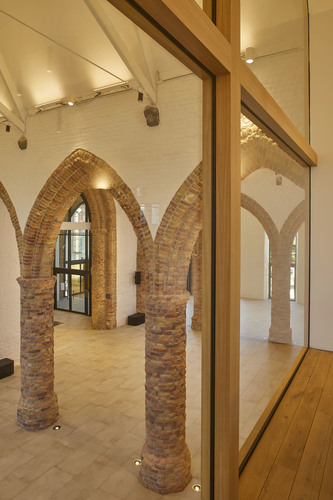 Na een zware brand werd deze kerk in 2019 volledig gerestaureerd en deels herbestemd als polyvalente ruimte. Foto genomen voor de uitreiking van de Onroerenderfgoedprijs 2020. De Sint-Niklaaskerk in Westkapelle is een verdiende laureaat van deze editie.