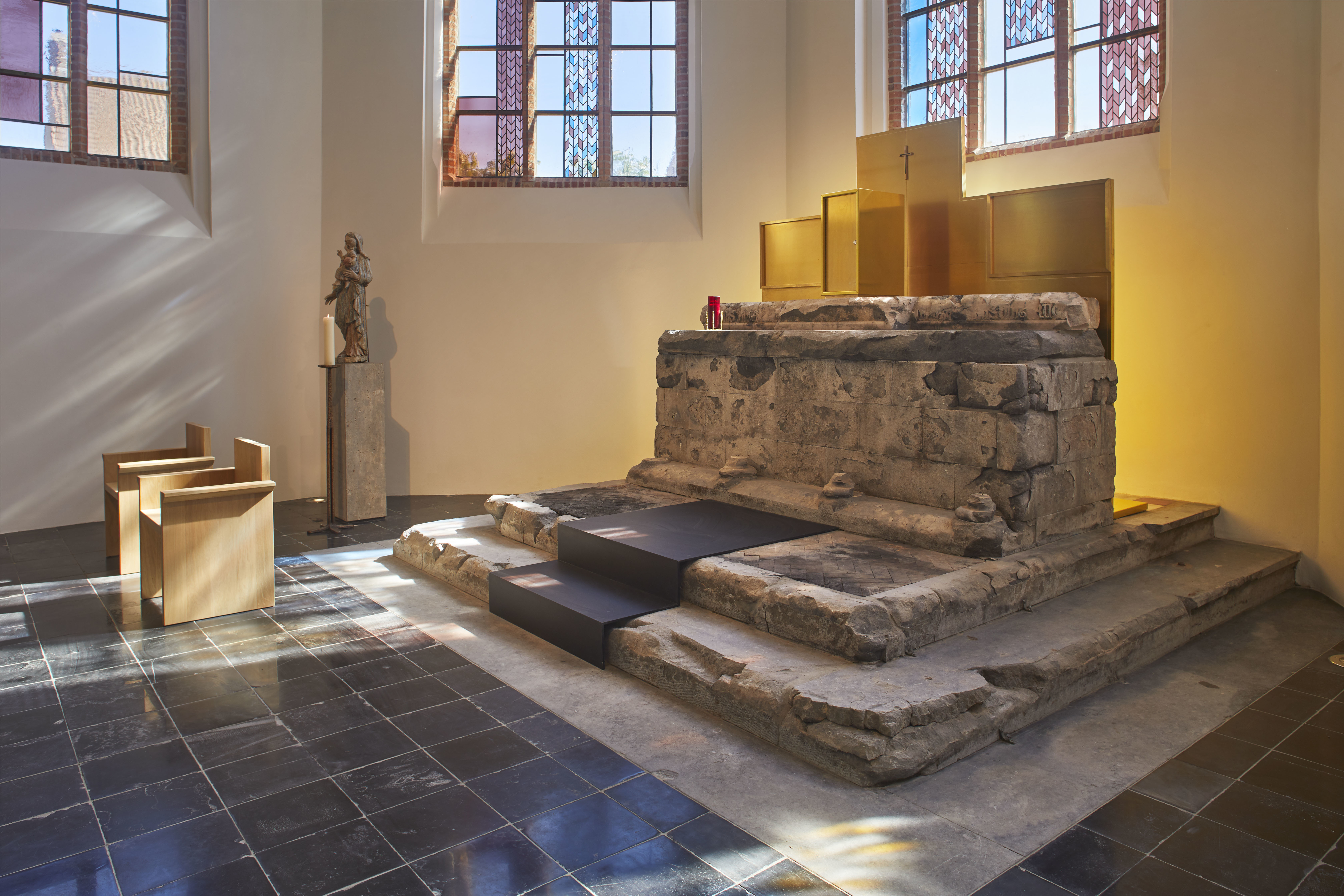 Na een zware brand werd deze kerk in 2019 volledig gerestaureerd en deels herbestemd als polyvalente ruimte. Foto genomen voor de uitreiking van de Onroerenderfgoedprijs 2020. De Sint-Niklaaskerk in Westkapelle is een verdiende laureaat van deze editie.