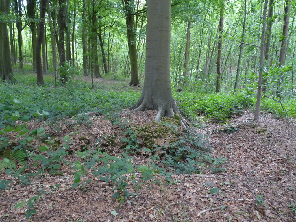 De afbeelding 'Loopgraven in Hotondbos' gemaakt door Schepens, Annelies wordt ter beschikking gesteld door Agentschap Onroerend Erfgoed (AOE) onder de volgende voorwaarden: Modellicentie voor gratis hergebruik, Naamsvermelding 4.0 Internationaal.
