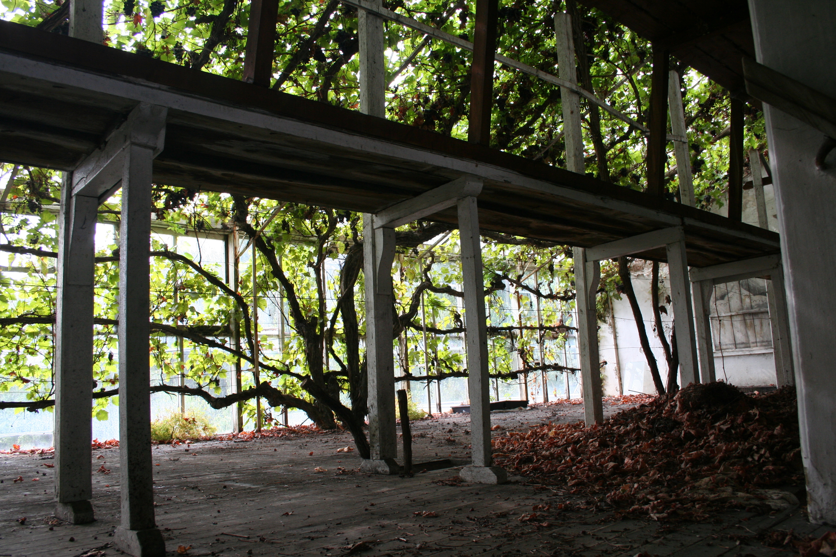 Waaiervorm druivelaars in bovenste deel serre