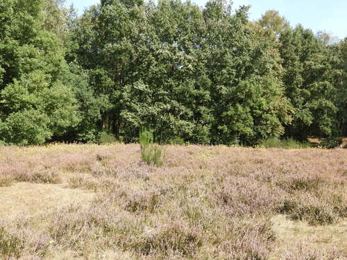 Struikheide op de rand van een grasland van de Kesselberg. Centraal, op het hoogste deel van de heuvel, komen heide, ruigtes, graslanden en enkele quasi onbegroeide percelen voor. De heide ontstond pas na de Tweede Wereldoorlog, aangezien de grond tijdens de oorlog als akker bewerkt werd. Ten gevolge van de verwaarlozing van de akkers ontstond een ruigte met allerlei grassen en enkele composieten. Nadien verschenen de eerste verspreide heidestruiken.