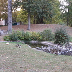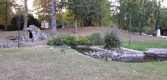 Vijver met imitatie grotje in cementrustiek