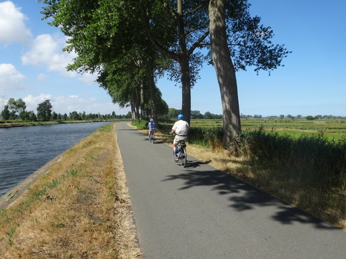 Kanaalsegment Oostendse vaart tussen Brugge en Plassendale met jaagpad en opgaande populierenrijen