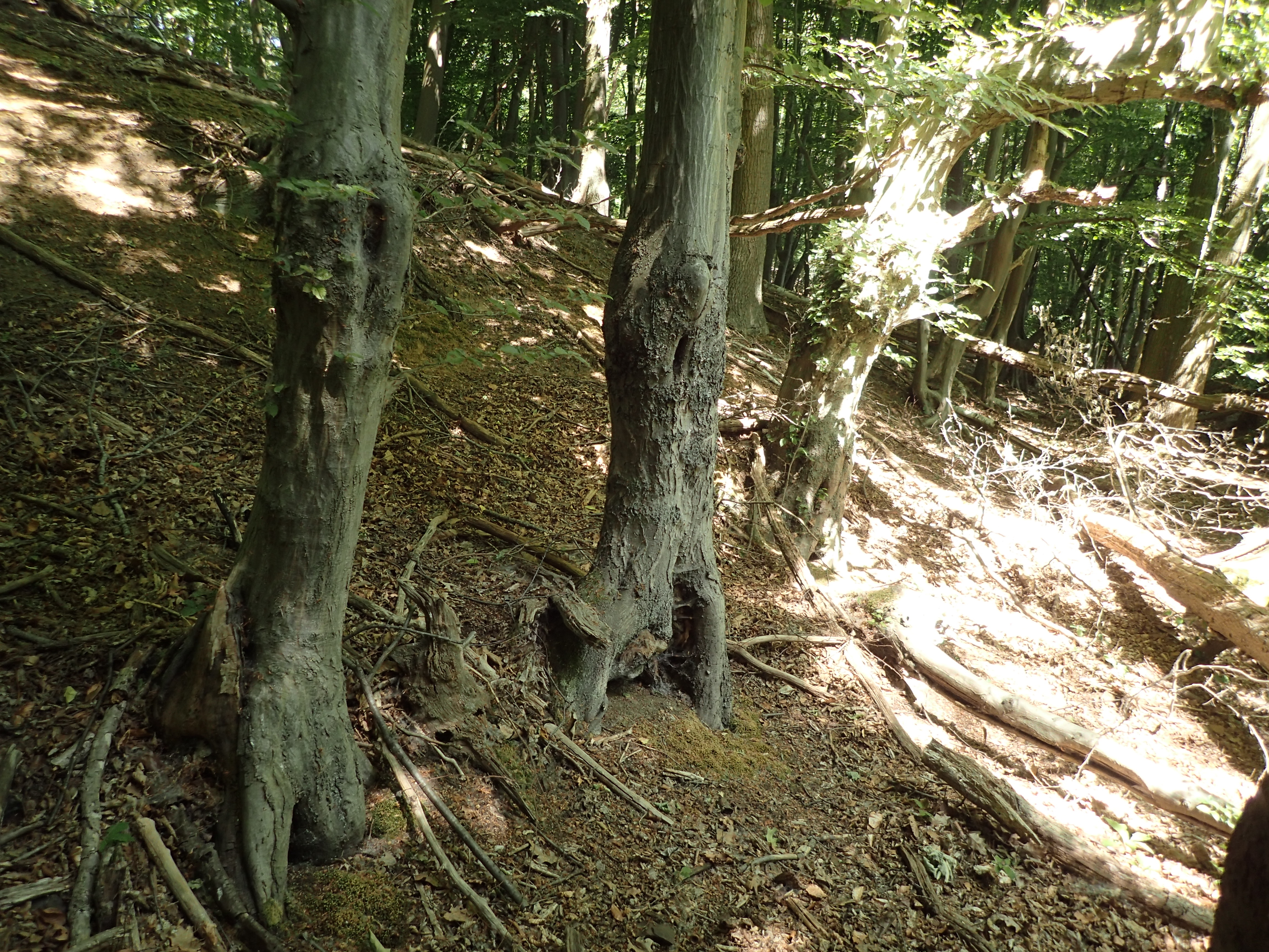Rij knothaagbeuken op talud