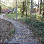 Tuin van het Van Dalecollege met het gekasseide Wolvenpoortpad