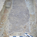 Aflijning van een inhumatiegraf met sporen van grafheropening