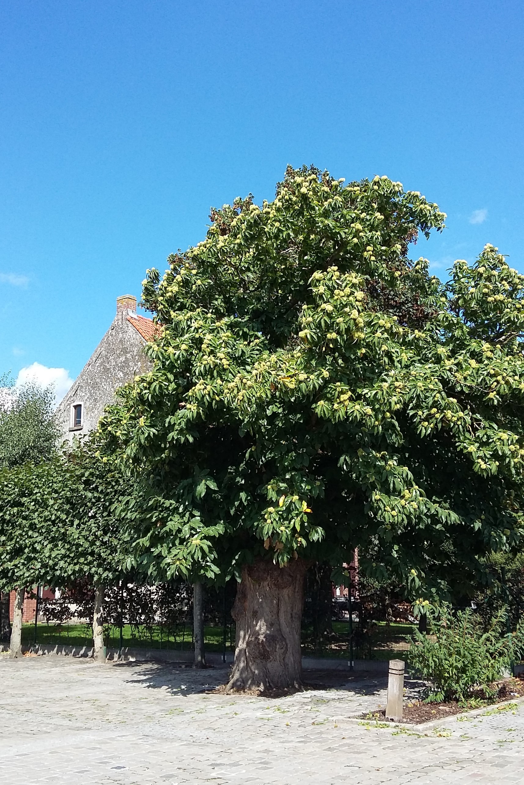 De afbeelding 'Oude kastanje' gemaakt door Schepens, Annelies wordt ter beschikking gesteld door Agentschap Onroerend Erfgoed (AOE) onder de volgende voorwaarden: Modellicentie voor gratis hergebruik, Naamsvermelding 4.0 Internationaal.