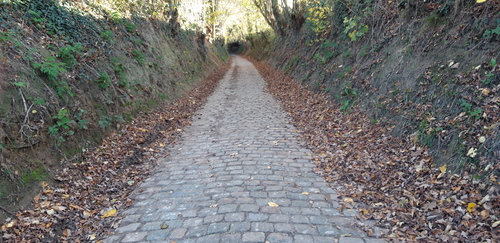 De afbeelding 'Kasseiweg Weygenstraat' gemaakt door Verboven, Hilde wordt ter beschikking gesteld door Agentschap Onroerend Erfgoed (AOE) onder de volgende voorwaarden: Modellicentie voor gratis hergebruik, Naamsvermelding 4.0 Internationaal.