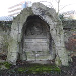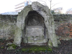 Veertiende statie "Jezus in het graf gelegd". De reliëfs van de kruisweg zijn uitgevoerd door beeldhouwer Antoon Jorissen.