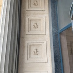 Detail van tegels aan de linkerkant van het inkom portaal.