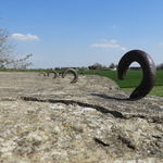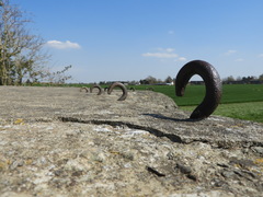 Haken op de dakrand van de bunker voor de bevestiging van camouflagenetten.