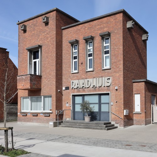 De afbeelding 'Raadhuis ontworpen door G.J. Callens' gemaakt door Desmet, Geert wordt ter beschikking gesteld door Desmet, Geert onder de volgende voorwaarden: Modellicentie voor gratis hergebruik, Naamsvermelding 4.0 Internationaal.