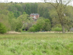 Zicht op villa 'Grotenhof vanuit de Dijlevallei. De villa werd in het begin van de 20ste eeuw gebouwd op de steile valleirand, tussen het station van Sint-Joris-Weert en Meerdaalwoud. Van op het grote witte balkon keken de bewoners uit over het prachtige valleilandschap.