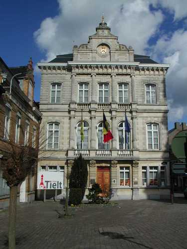 De afbeelding 'Stadhuis van Tielt' gemaakt door Santy, Pieter wordt ter beschikking gesteld door Agentschap Onroerend Erfgoed (AOE) onder de volgende voorwaarden: Modellicentie voor gratis hergebruik, Naamsvermelding 4.0 Internationaal.
