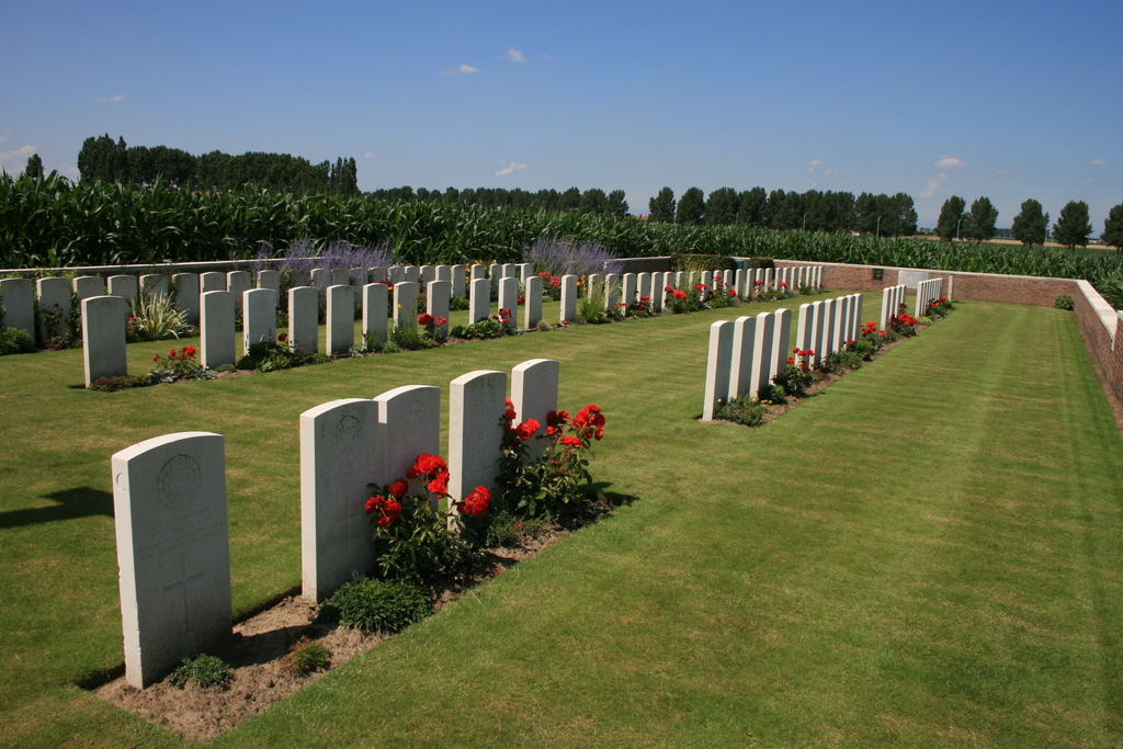 De afbeelding 'Wieltje Farm Cemetery' gemaakt door Decoodt, Hannelore wordt ter beschikking gesteld door Agentschap Onroerend Erfgoed (AOE) onder de volgende voorwaarden: Modellicentie voor gratis hergebruik, Naamsvermelding 4.0 Internationaal.