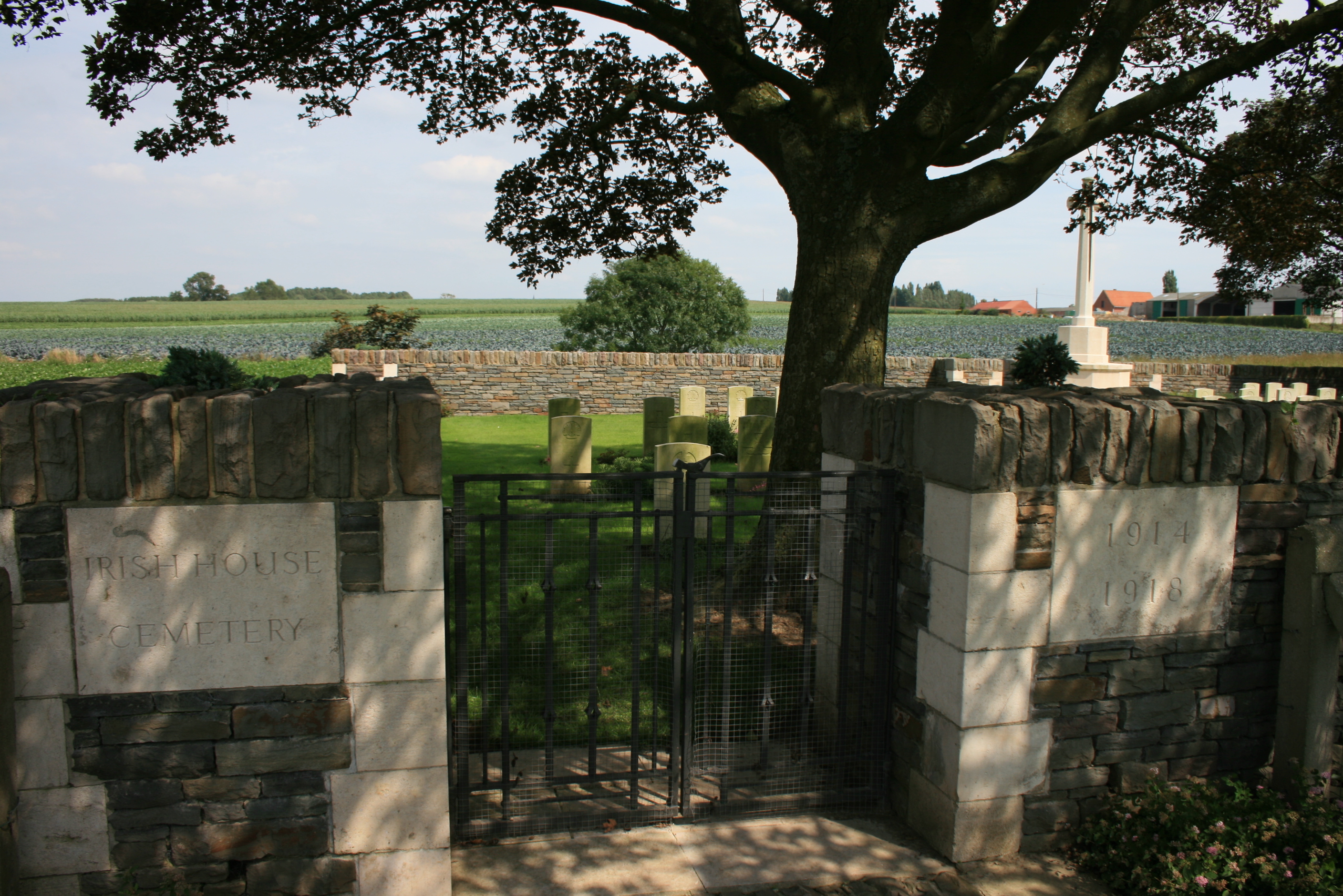 De afbeelding 'Irish House Cemetery' gemaakt door Decoodt, Hannelore wordt ter beschikking gesteld door Agentschap Onroerend Erfgoed (AOE) onder de volgende voorwaarden: Modellicentie voor gratis hergebruik, Naamsvermelding 4.0 Internationaal.