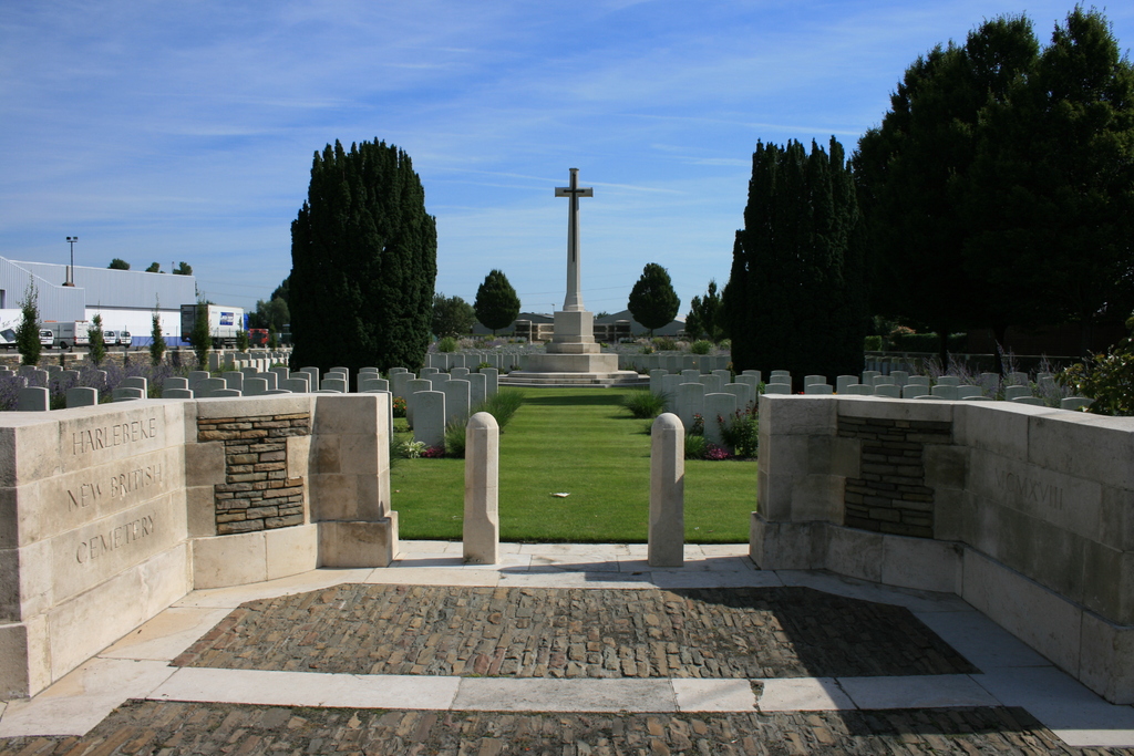 De afbeelding 'Harlebeke New British Cemetery' gemaakt door Decoodt, Hannelore wordt ter beschikking gesteld door Agentschap Onroerend Erfgoed (AOE) onder de volgende voorwaarden: Modellicentie voor gratis hergebruik, Naamsvermelding 4.0 Internationaal.