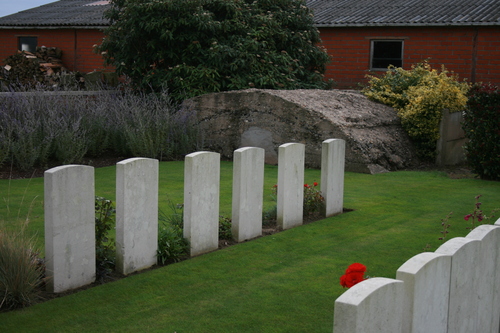 De afbeelding 'Derry House Cemetery No. 2 met Britse bunker' gemaakt door Decoodt, Hannelore wordt ter beschikking gesteld door Agentschap Onroerend Erfgoed (AOE) onder de volgende voorwaarden: Modellicentie voor gratis hergebruik, Naamsvermelding 4.0 Internationaal.